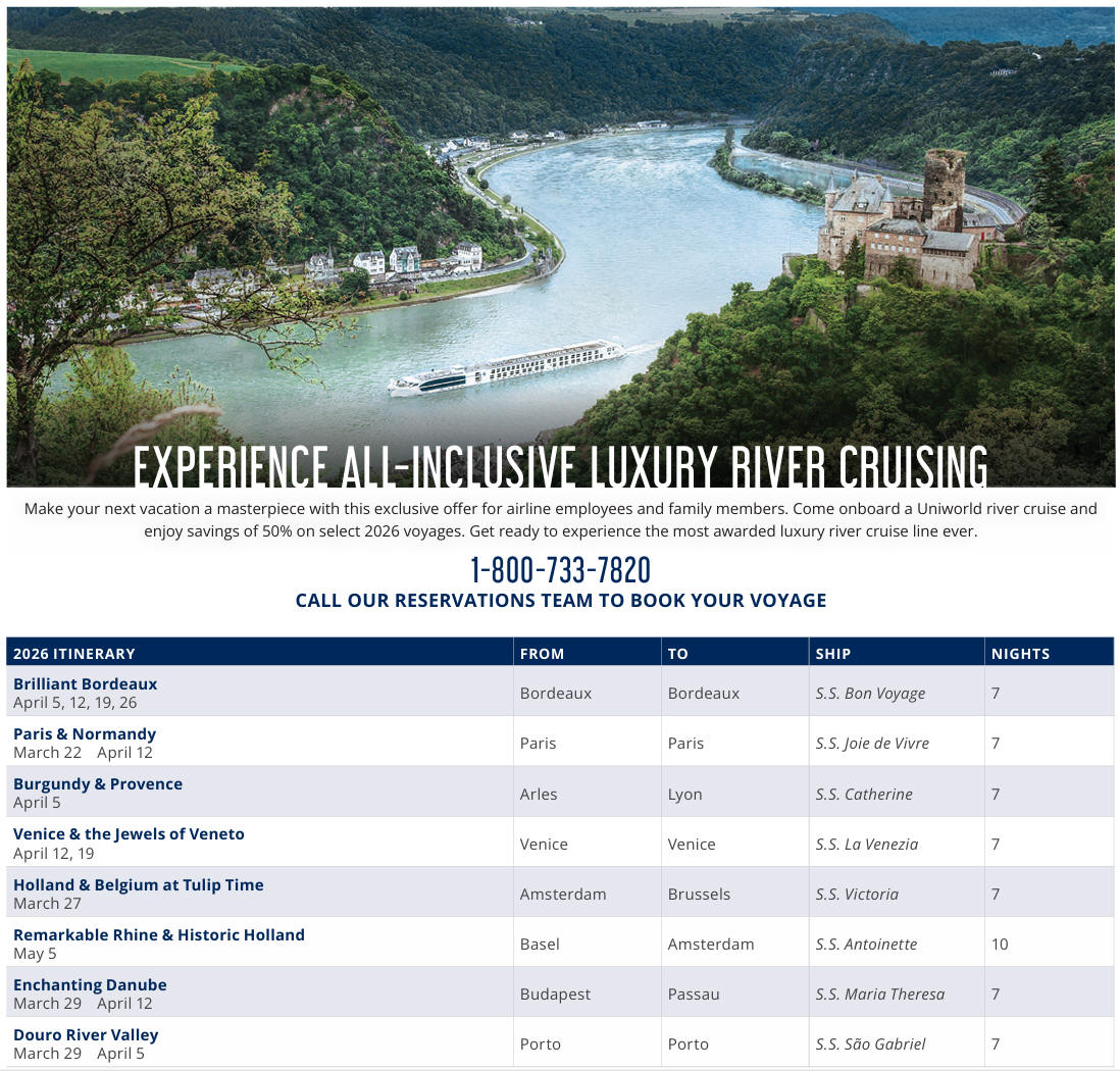 more information about Uniworld's ship and itineraries please visit: