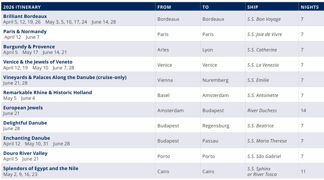 ships, expertly planned itineraries and attentive all-English-speaking staff.