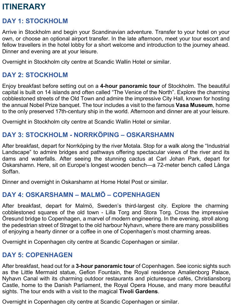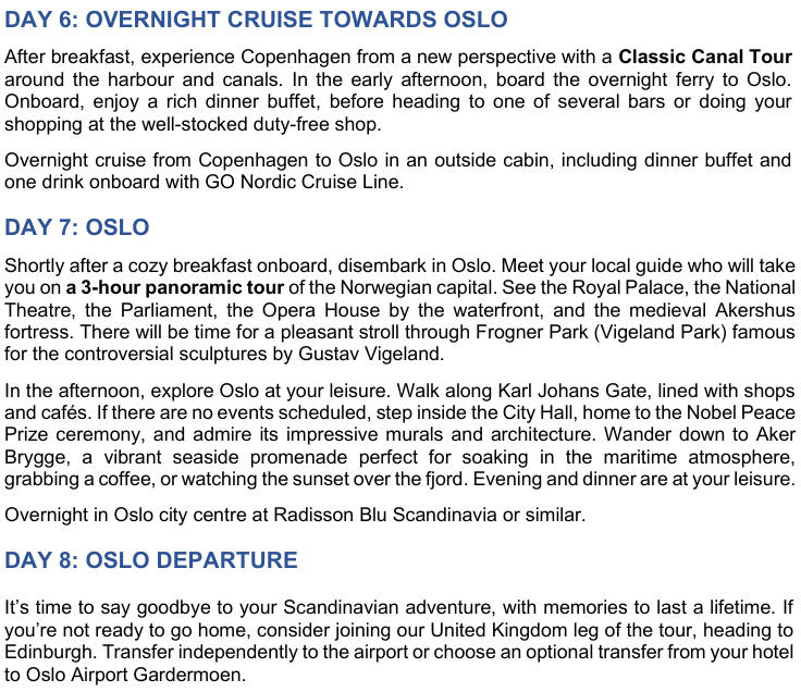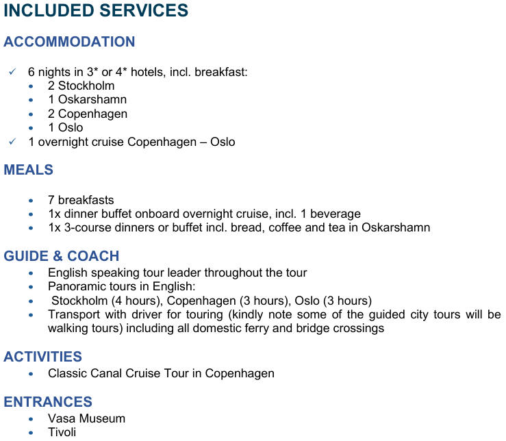 Project Arrival City Stockholm Departure City Oslo Per person Double