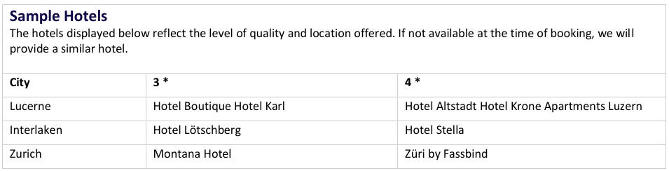 Extra days can be added on to your Swiss Travel